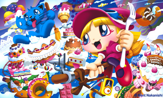 読売新聞広告(2009年お正月) 毎号イラストをご依頼いただいている「マガジンマガジン」さんの新聞広告。 2008年のお正月、夏休みに引き続き、第三弾!! 2009年も飛んでます! お菓子の国にやってきた、魔女っ子ミニィです。 このキャラクターはご好評をいただき、その後 2008年11月から 雑誌ナンプレメイトminiエキスパートの表紙イラストとしても活躍しています☆
