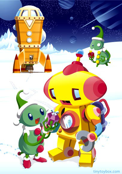 『プレゼント星のプレゼント星人』 雪の星に降りたったら、そこはプレゼント星でした。 箱の中身はきっと、心があたたかくなるような贈りもの。